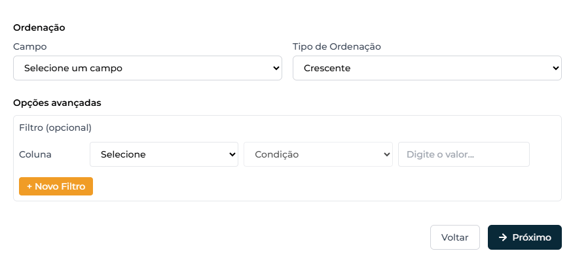 No painel de filtros, selecione o campo desejado (por exemplo: tipo de usuário, status, data de criação).