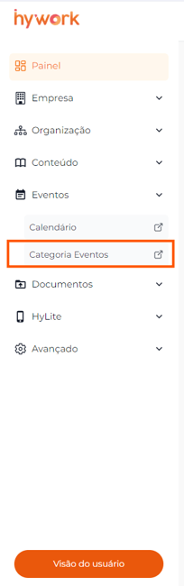 1- Na visão de administrador, clique em "Eventos" e em "Categoria de eventos"