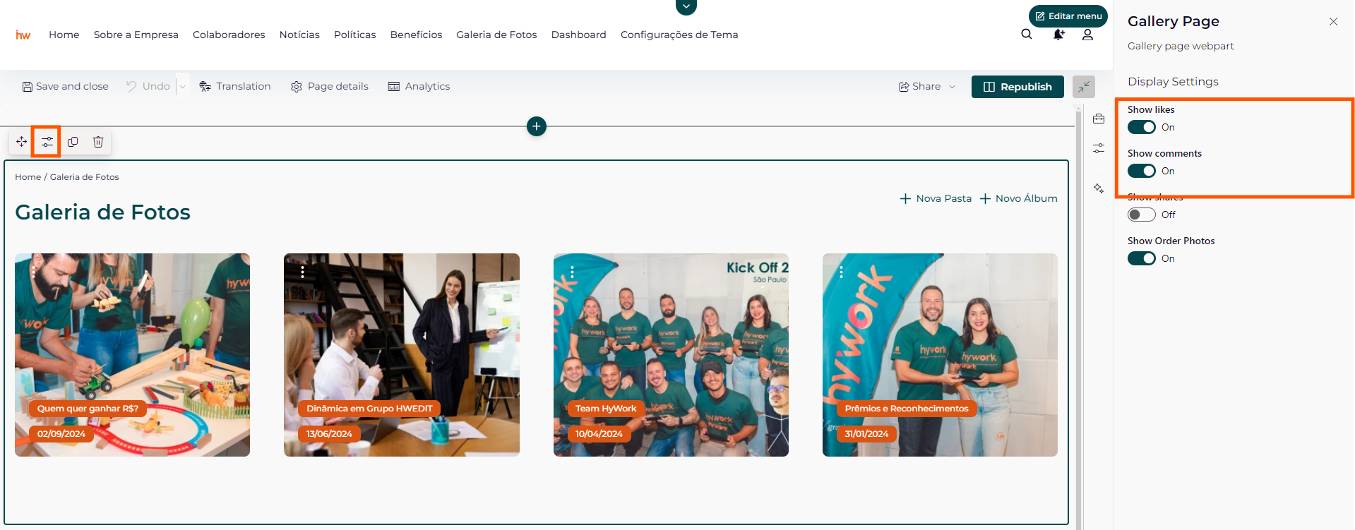 Aprenda a ativar as funcionalidades de curtidas e comentários nas fotos do seu álbum na intranet. Este artigo fornece um passo a passo simples para permitir que os colaboradores interajam com as imagens, compartilhando opiniões e reações.