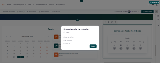 Este guia mostra como configurar a exibição do trabalho híbrido diretamente na página inicial da sua intranet, permitindo que todos os colaboradores visualizem os dias de trabalho remoto e presencia