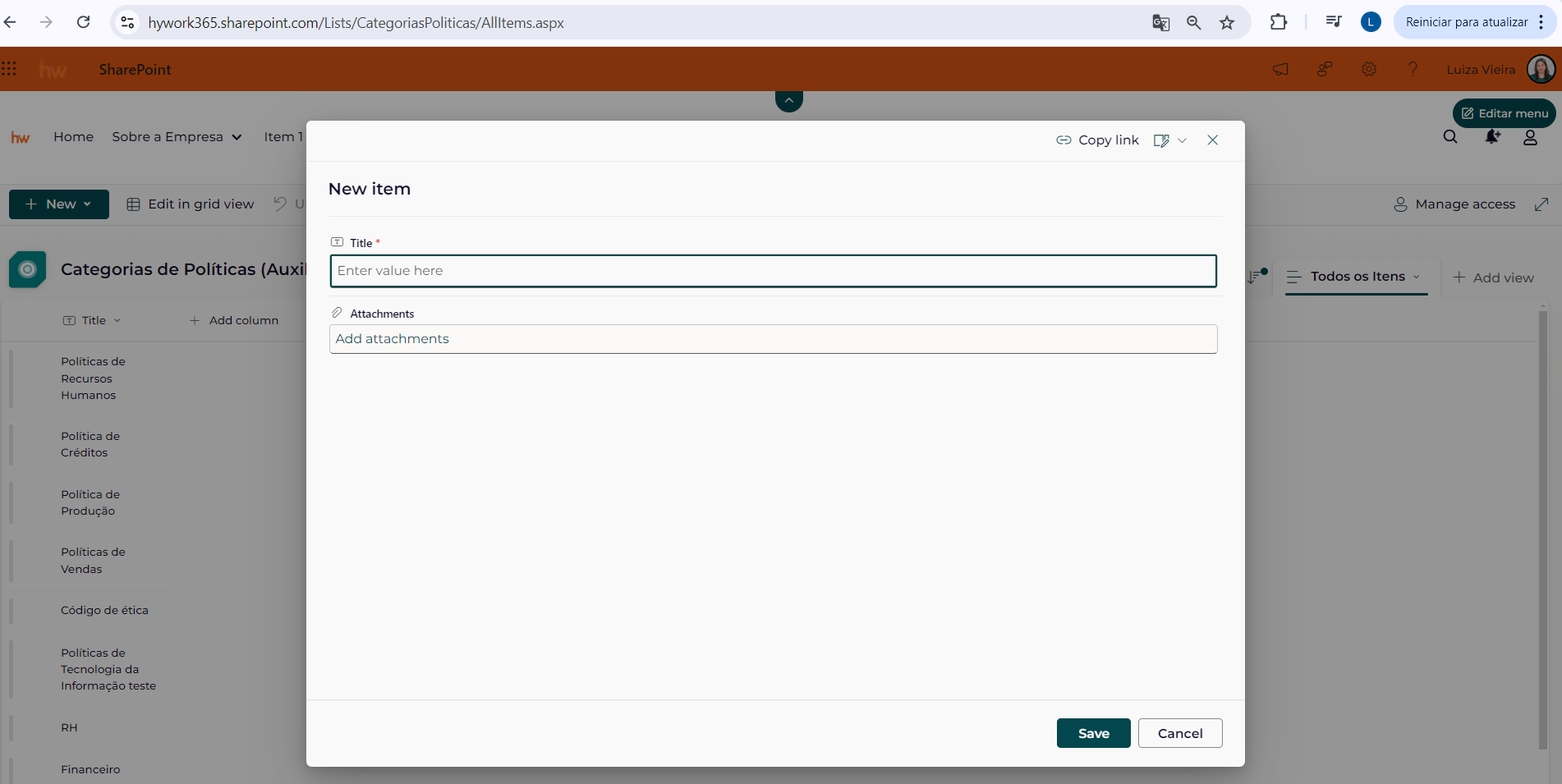 Gerenciar categorias das políticas