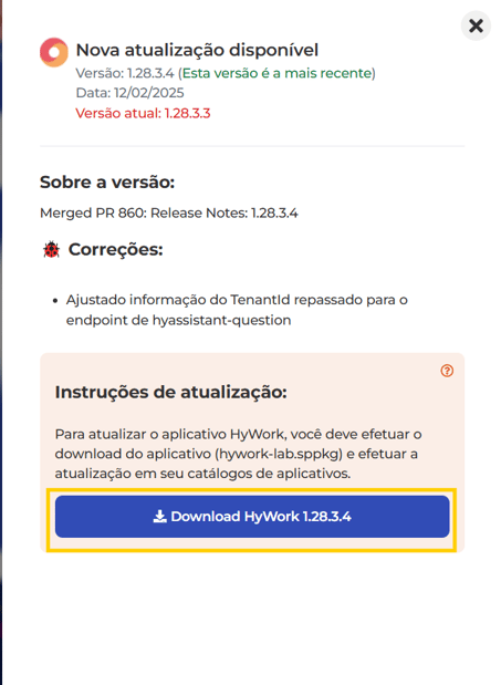 Este documento descreve o processo de atualização do aplicativo HyWork, incluindo as correções e inovações disponibilizadas, dentro da plataforma SharePoint.