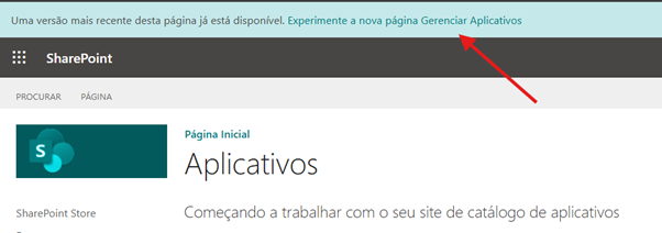 Caso você esteja utilizando a experiência clássica no catálogo de aplicativos, será necessário mudar para a nova experiência. Para isso, clique em Experimentar a nova página Gerenciar Aplicativos, localizada no cabeçalho da página.