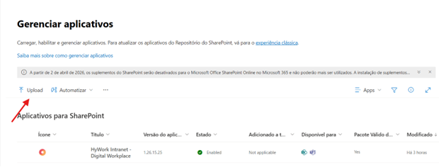 Guia de Atualização do Aplicativo HyWork no SharePoint