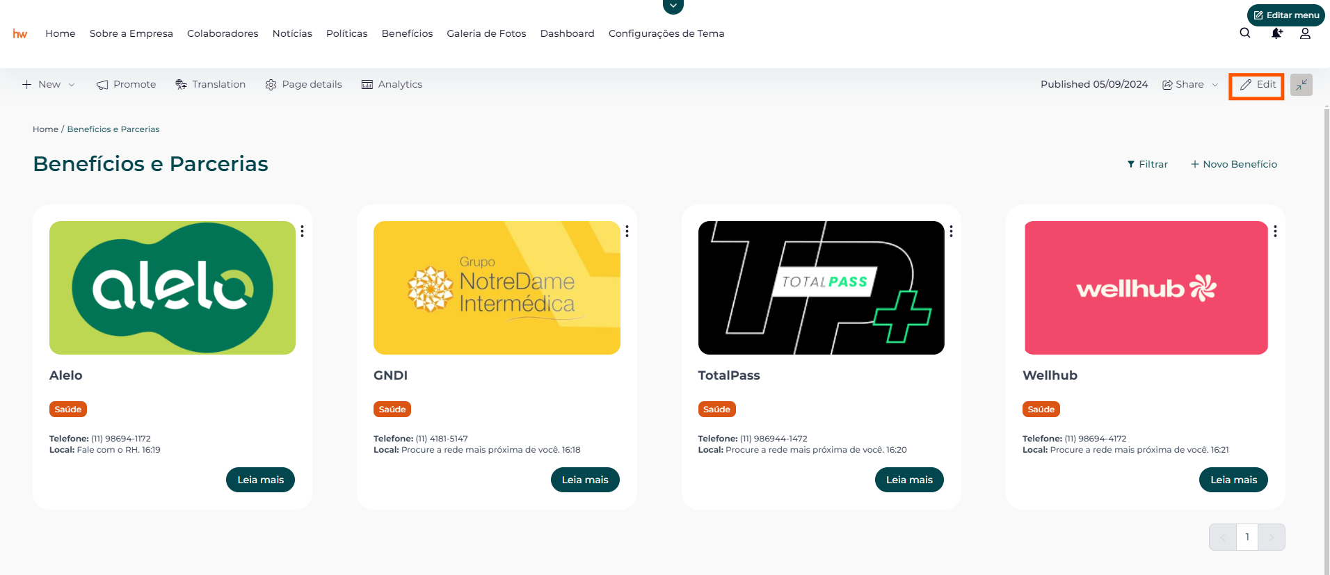 2- Selecione o bloco de conteúdos e clique no ícone de editar.
