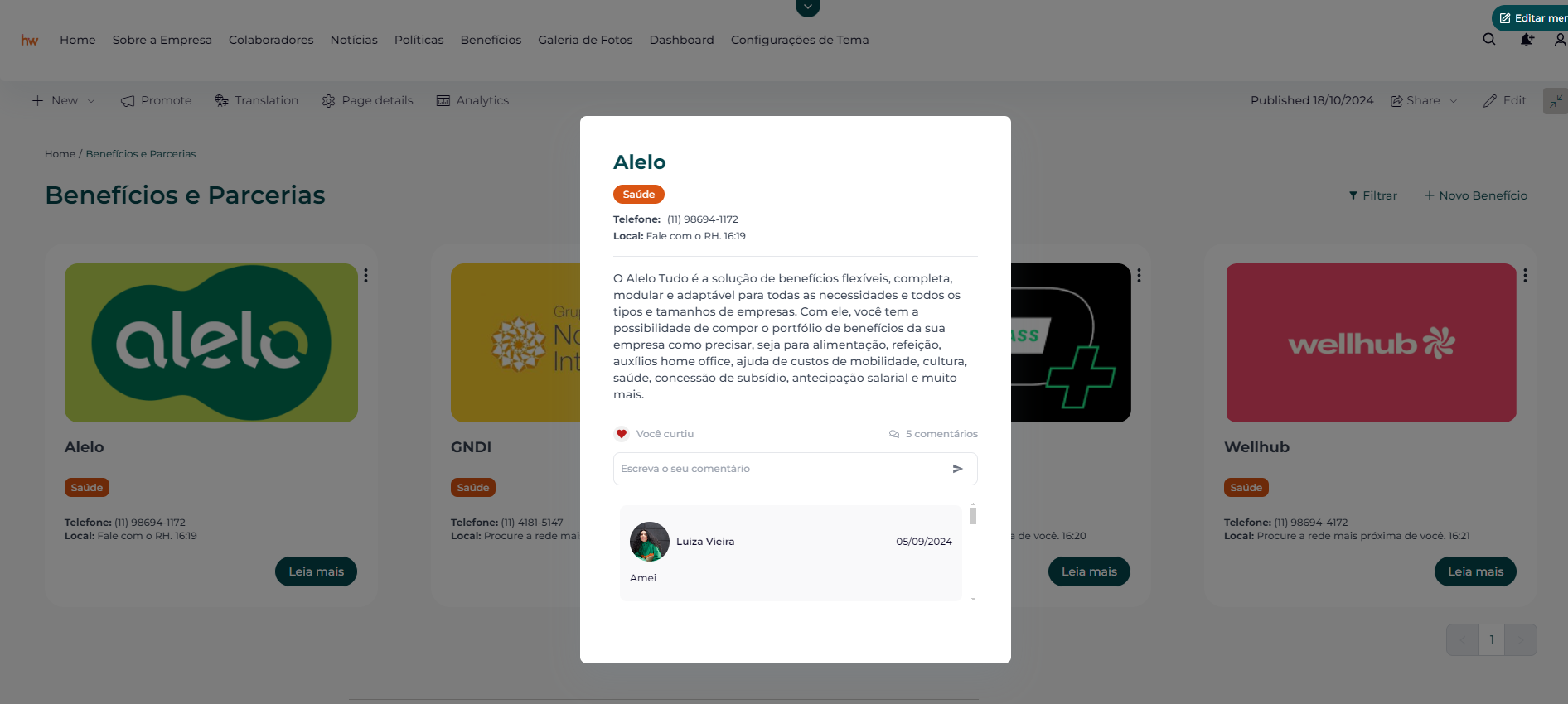 Neste artigo, você aprenderá como ativar as opções de curtidas e comentários nos benefícios cadastrados na intranet. Permita que os colaboradores interajam, compartilhem suas opiniões e deem feedback sobre os benefícios oferecidos, promovendo um ambiente mais participativo e engajado.