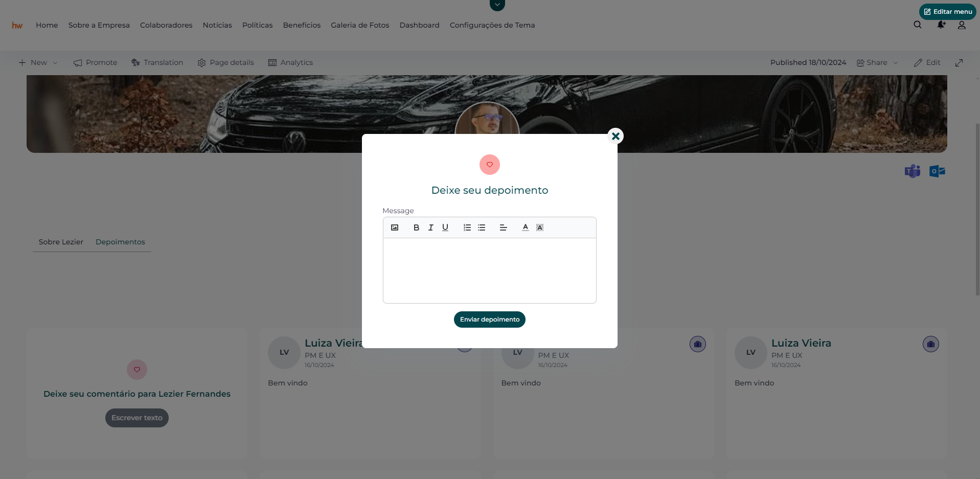 O Mural de Depoimentos é uma excelente ferramenta para compartilhar experiências e feedbacks dos colaboradores, promovendo um ambiente de trabalho mais colaborativo e transparente. Este guia irá orientá-lo sobre como habilitar e configurar o mural de depoimentos na sua intranet.