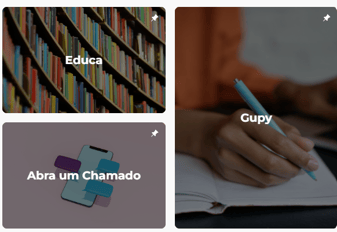 Na intranet, o administrador pode definir até 4 itens para os destaques. O layout da webpart se ajusta automaticamente de acordo com o número de itens definidos, seguindo as seguintes proporções:
