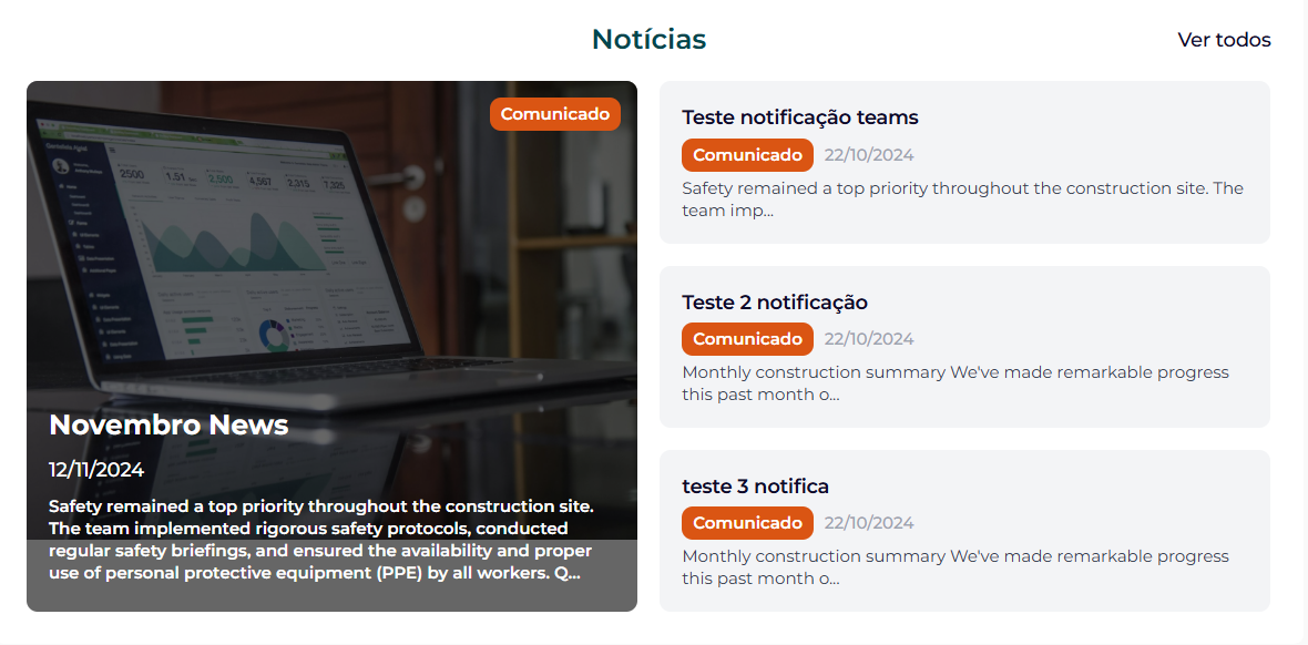 A webpart de notícias da página inicial se adapta a todas as resoluções de tela utilizando uma única proporção, garantindo que o conteúdo seja exibido corretamente em qualquer dispositivo.